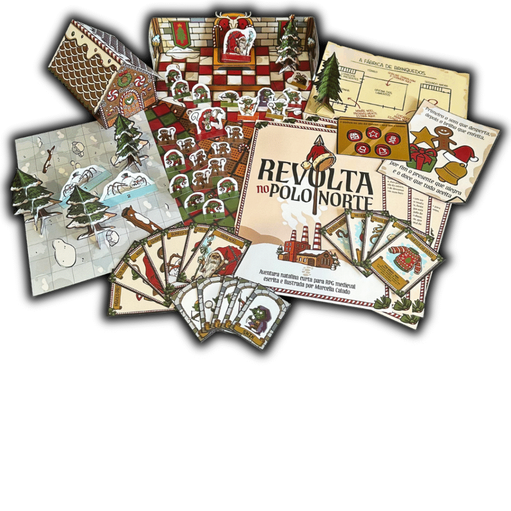 Agora, Marcella traz essa mesma magia em uma nova versão: o Kit Mestre RPG – Edição Natalina, um material totalmente ilustrado e desenvolvido por ela, feito para transformar o Natal dos jogadores em uma grande aventura.