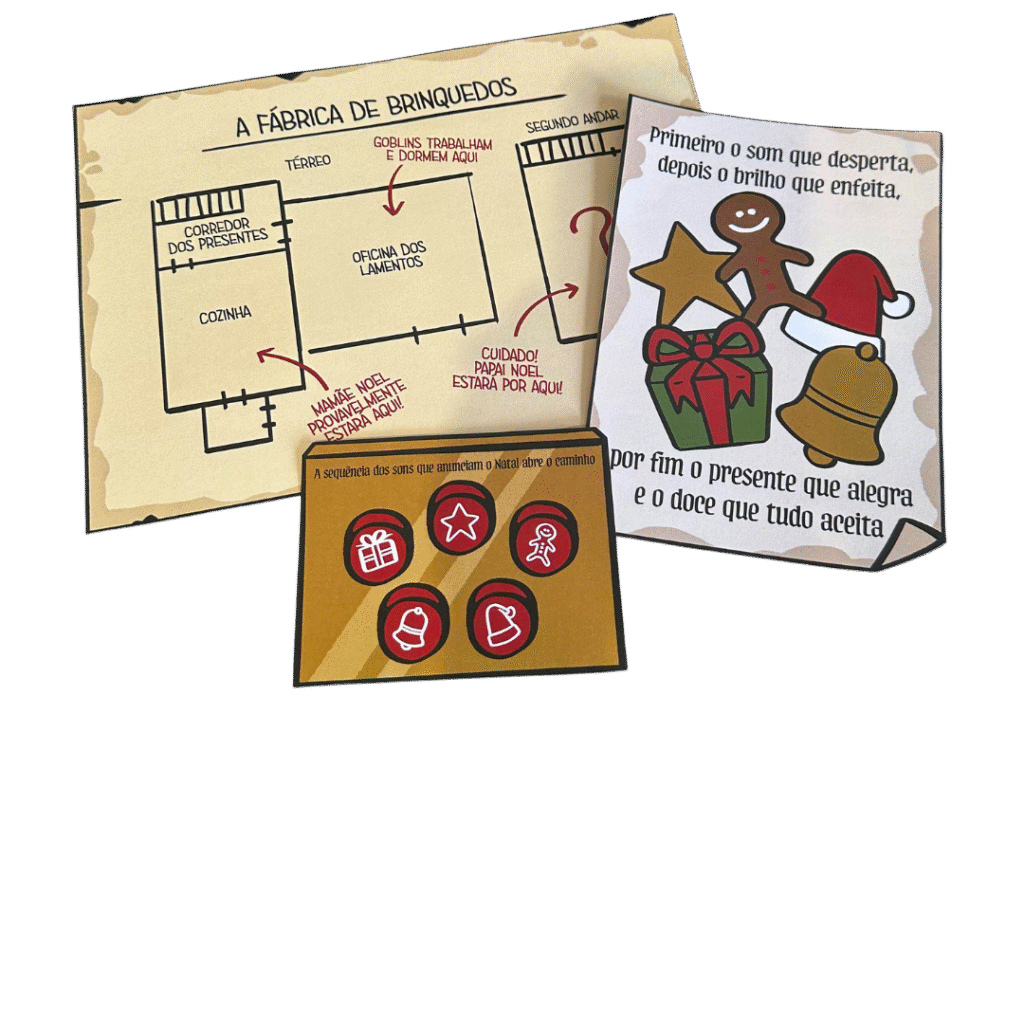 Mapa, folhetos e enigmas para entregar para os seus jogadores durante a aventura.